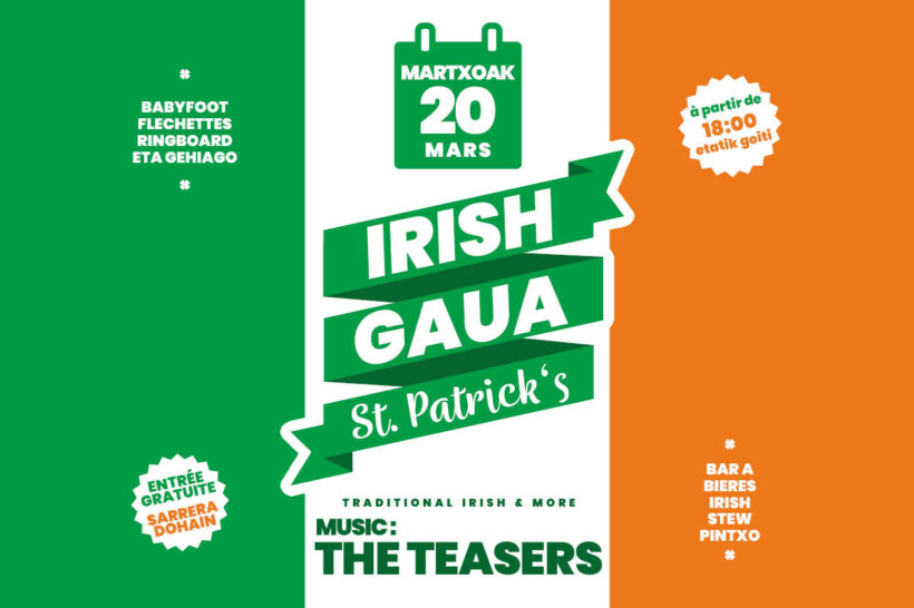 Bar à bières, Irish Stew, et pintxos pour le corps, Babyfoot, fléchettes et autres jeux pour la tête et The Teasers et son répertoire irlandais et rock pour les oreilles !